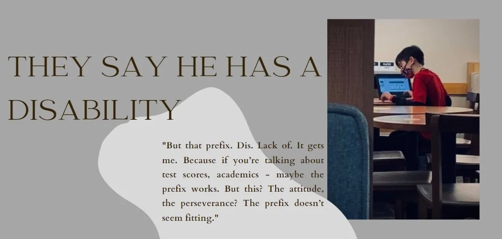 They say he has a disability. But that prefix. Dis. Lack of. It gets me. Because if you’re talking about test scores, academics - maybe the prefix works. But this? The attitude, the perseverance? The prefix doesn’t seem fitting. Not for him. Not for many kids like him. Not for what I see.